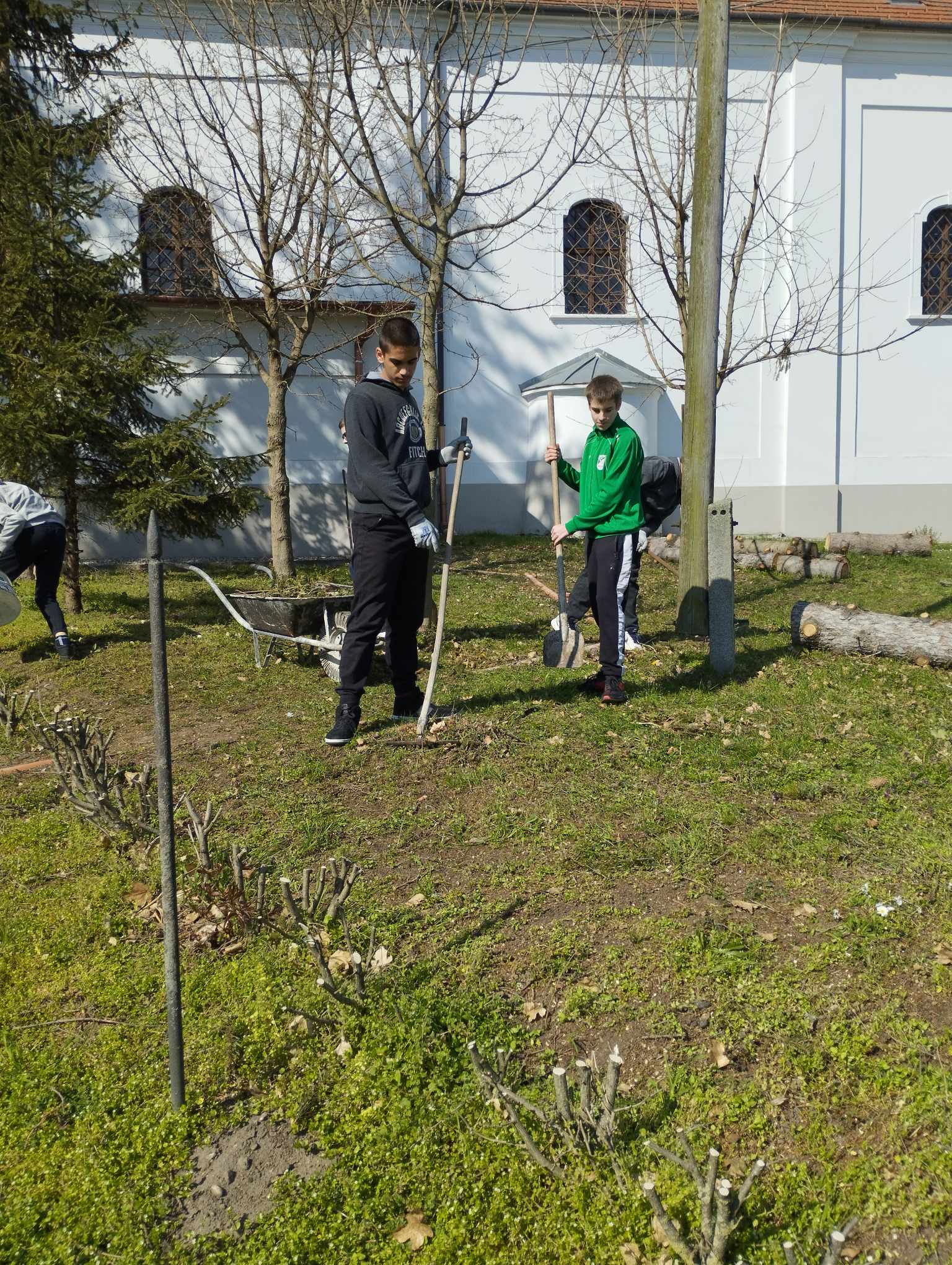 A téli időszakban hetedikeseink egy kis fahordásban, valamint a húsvét előtti templomkert rendezésében jeleskedtek.